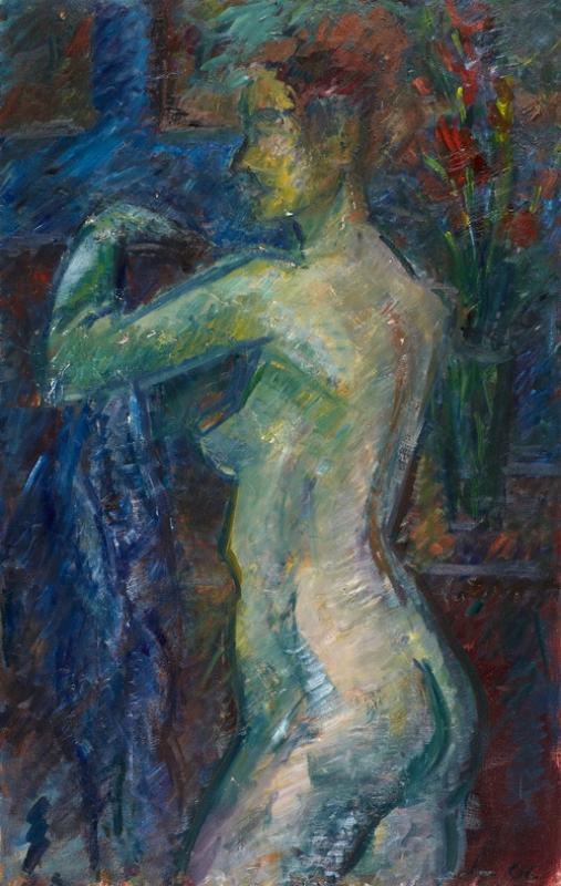 Titel: Stehender Akt mit Schnittblumen