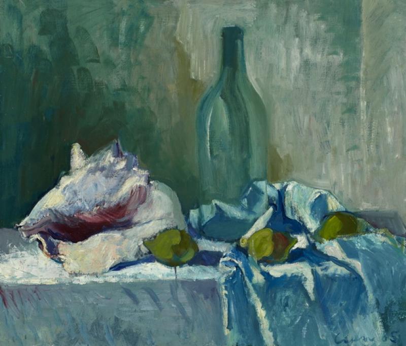 Titel: Stillleben mit Muschel und Flasche