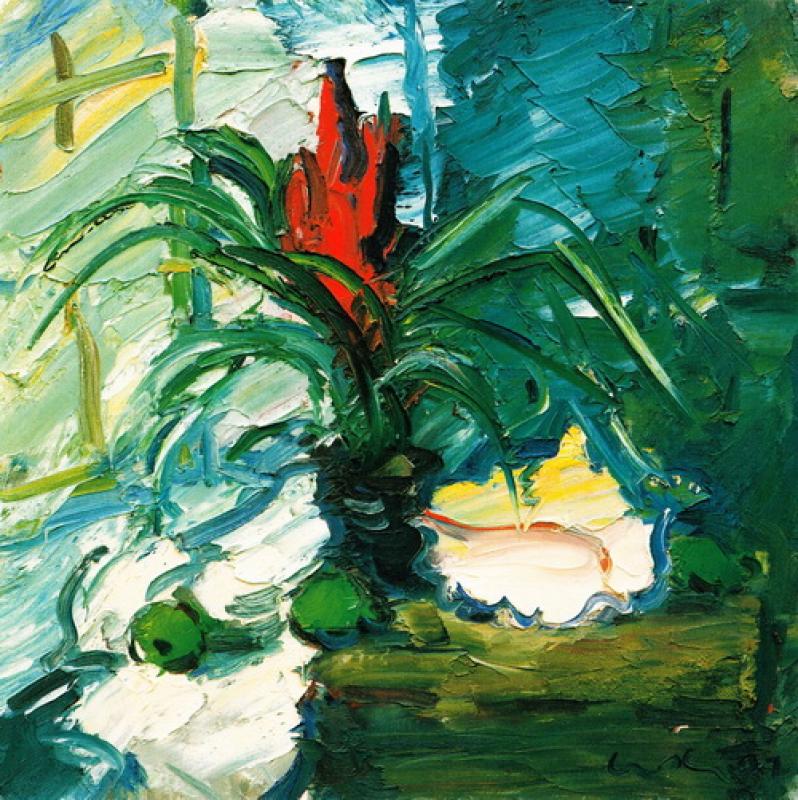 Titel: Stillleben mit flammendem Schwert, Muschel und Limonen